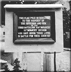 ![]() Flagpole dedicated Memorial Day 1945 Waldmunchen, Germany This Flagpole is dedicated the memory of the officers and men of the Third Battalion 358th Infantry, 90th Infantry Division who have given their lives in battle for their country. |